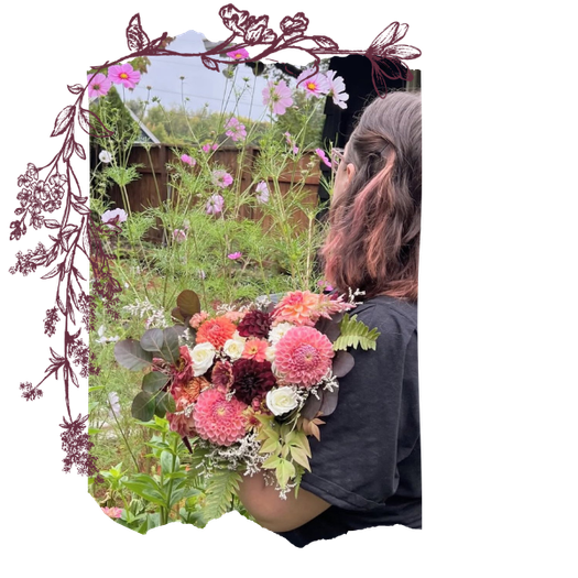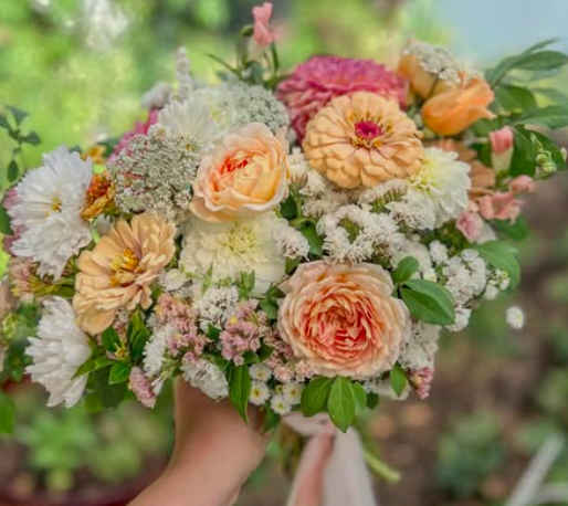 We offer fairytale florals for whimsical weddings and storybook brides. Our blooms are lovingly grown in our gardens or responsibly sourced from local growers. All harvested fresh and woven into the bouquet and arrangements with care and affection.